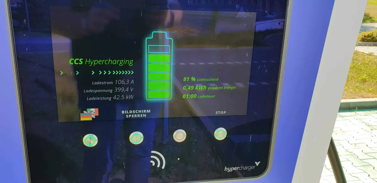 Unsere BnBW-Ladestation kann mit maximal 75 kW Gleichstrom laden. Bei meinem Test kam ich nicht über 42,5 kW. Allerdings war der Akku des Tesla M3 schon recht voll und der Akku auch nicht vorkonditioniert. Bei einem viertel stündigen Einkauf bei Rossmann kann man rechnerisch gut 100 km mehr Reichweite laden und das günstiger als an der heimischen Wallbox.
