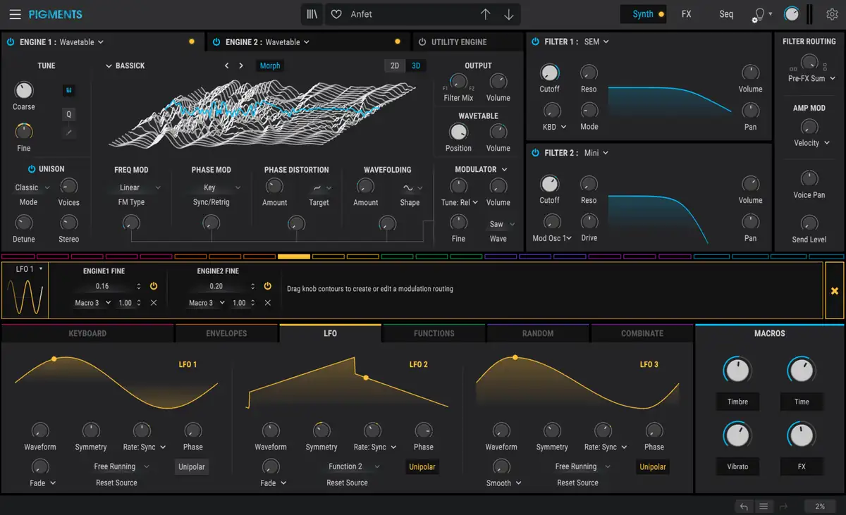 - Neue Wavetable - Die Wavetable-Enginge ist eine der wohl mächtigsten Funktionen in Pigments, welche nun um viele weitere Wavetables erweitert wurde.
