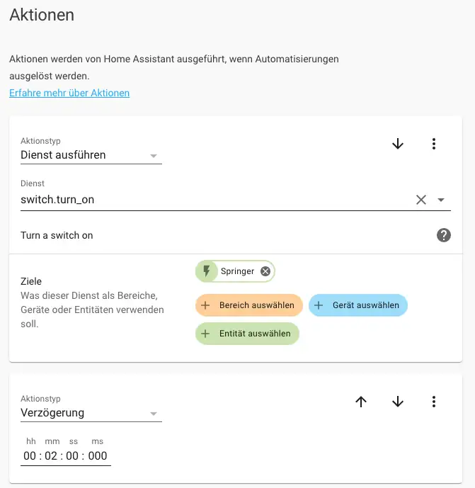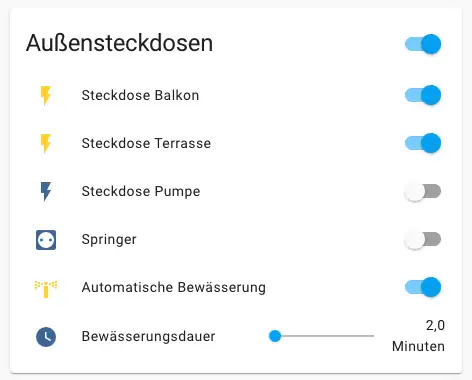 Im Lovelace Frontend kann man einen Schalter für die Automation einbauen, mit dem man sie bei Bedarf auch deaktivieren kann. Ich habe auch einen Schalter für meine “Springer” Steckdose, damit ich diese auch manuell schalten kann.