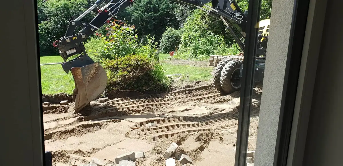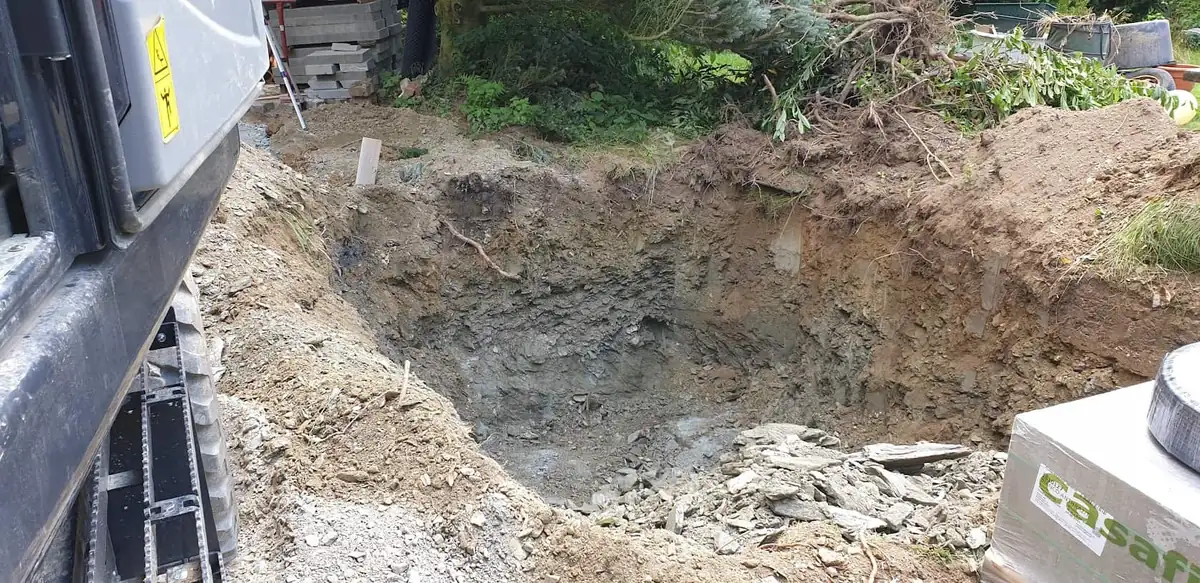 Da gab es noch Rohre aus Ton und die sind irgendwann einmal kaputt. Da sowieso alles aufgerissen und der Bagger schon da war, war der Aufwand dafür überschaubar, daher haben wir uns auch gleich noch eine Regenwasserzisterne einbuddeln lassen, die das gesamte Regenwasser der großen Dach-Südseite auffangen kann. Durch die starken Regenfälle der letzten Tage ist die auch schon bis oben hin voll - immerhin 5.000 Liter. Zwei weitere Behälter (auf dem Bild oben rechts) waren schon von den Vorbesitzern hier und wurden versetzt. Auch diese fassen noch einmal gut 3.000 Liter und werden vom Garagendach gespeist.