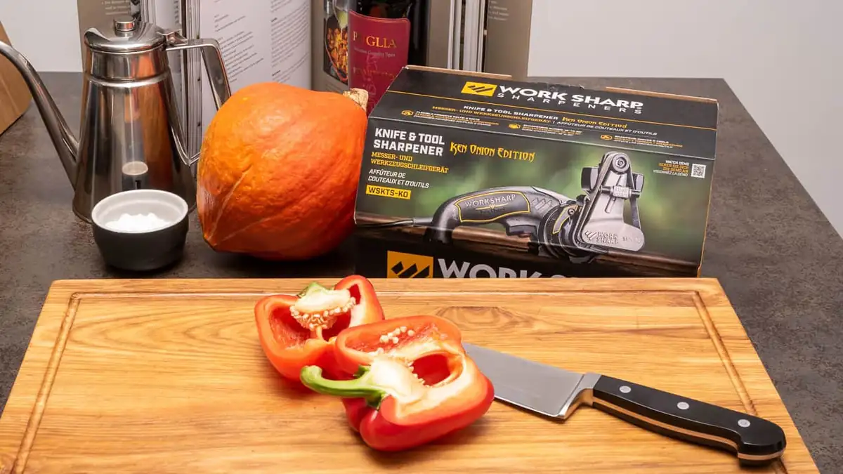 Auf der Suche nach Alternativen bin ich auf den Work Sharp Knife and Tool Sharpener Ken Onion Edition gestoßen. Das ist ein elektrischer Messerschärfer, der einigen Kultstatus und allerbeste Bewertungen für sich verzeichnen kann. Mit 175 Euro ist er aber auch wahrlich nicht gerade billig. Ken Onion sagte mir erst einmal gar nichts. Eine Recherche ergab, dass er wohl ein US-Messerpapst ist, der Messer in Handarbeit herstellt.