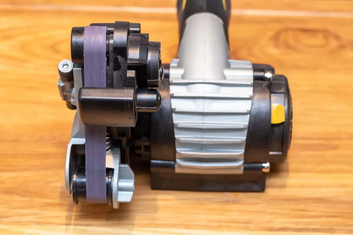 Man sollte den Work Sharp allerdings eher in der Werkstatt, als auf der teuren Arbeitsplatte einsetzen, denn der Staub vom Abrieb der Bänder ist nicht unerheblich und sehr abrasiv. Also entweder ein Küchentuch unterlegen oder gleich damit nach außen oder in die Werkstatt.