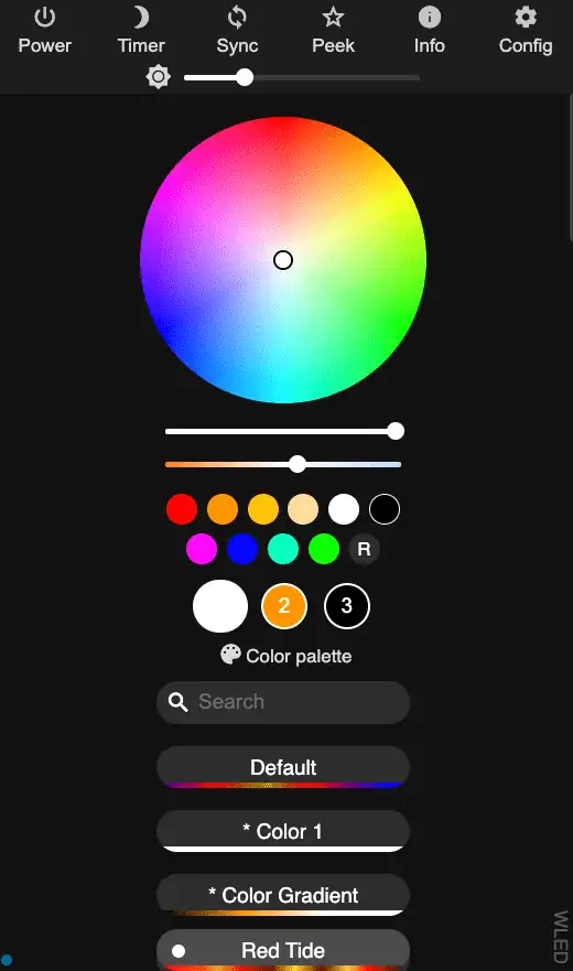 Hat man die Firmware erfolgreich geflasht, startet der Controller neu und eröffnet einen WLAN-Access Point. Mit dem Password wled1234 kann man sich mit dem Smartphone oder einem anderen WLAN-fähigen Gerät damit verbinden, den neuen WLED-Controller ins heimische WLAN einbinden und ihm einen Namen geben. Über dessen IP oder seinen Namen kann man auf die Weboberfläche des WLED-Controllers zugreifen:
