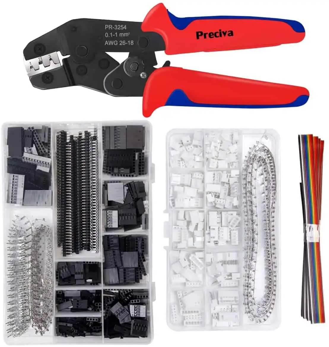 Der Strip wird bei mir über einen JST-Stecker angeschlossen. Mit diesem schönen Set samt Crimp-Zange , kann man wunderbar ordentliche Steckverbindungen bauen. Da die Zuleitung zum Strip bei mir sehr kurz ist (10 cm), genügt ein AWG24 Querschnitt (0,25 mm2) vollkommen. Mit etwas Übung im Umgang mit Perfboards ist der Aufbau ist in 15 Minuten geschehen.