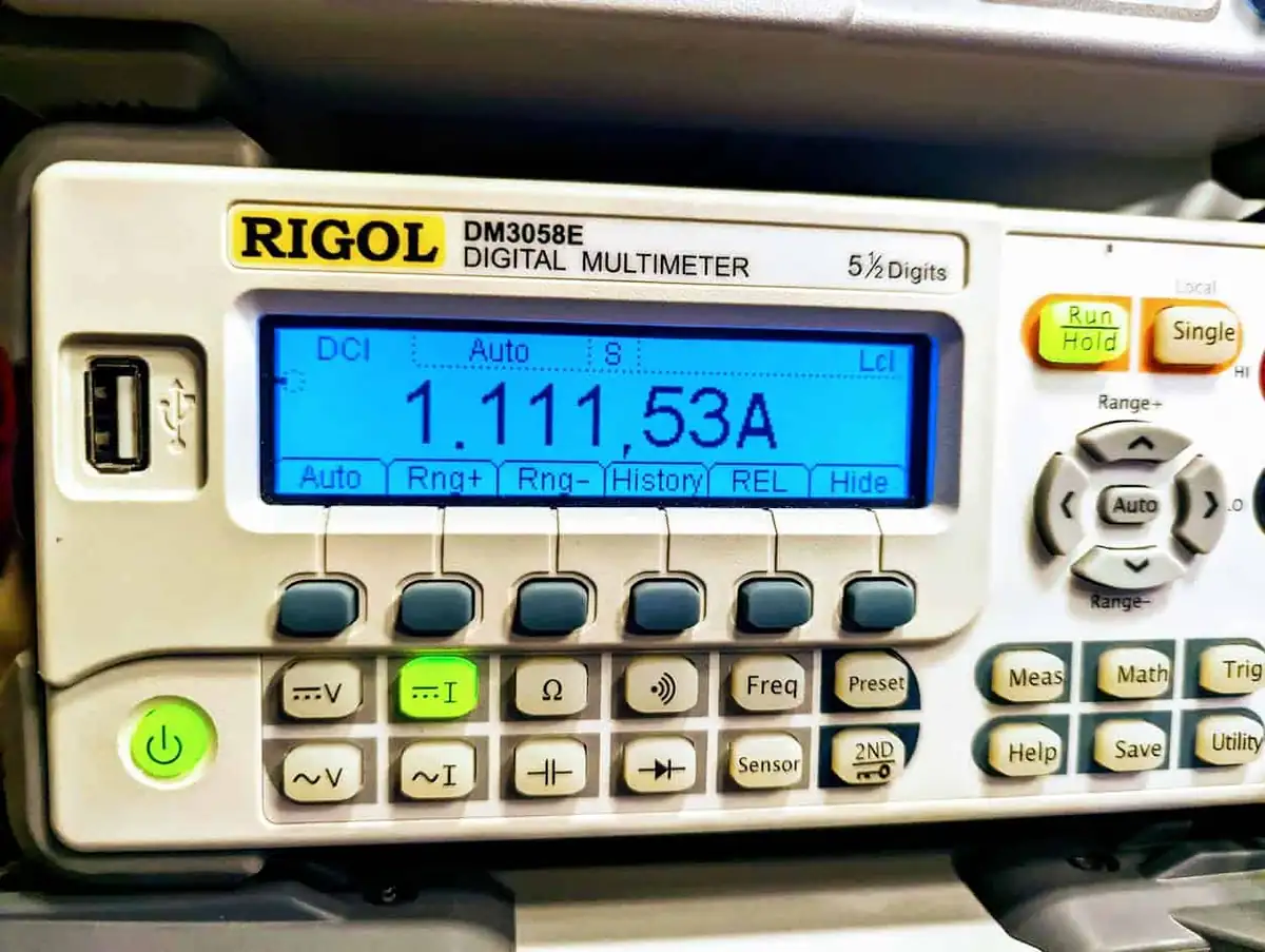 Zu den LED Strips gibt es jede Menge Berichte und Aussagen zur Stromaufnahme. Meist wird von 60 mA pro LED ausgegangen, was bei weißem Licht und 45 LEDs einen Strom von 2,7 Ampere bedeuten würde. Ich habe verschiedene Messungen gemacht und bei meinem Chinly Strip benötigen die 45 LEDs bei voller Ansteuerung gerade mal 1,1 Ampere.
