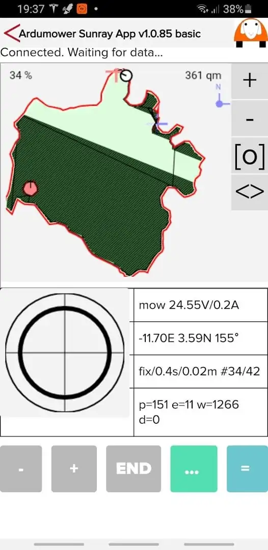 Das Aufzeichnen der Karte war kein Problem. Einfach mit der App den ArduMower per “Steuerkreuz” wie ein RC-Auto fernsteuern und die Ränder abfahren. Dabei setzt man manuell die Wegpunkte. Danach die Bereiche aufzeichnen, die umfahren werden sollen. Das ist der große Vorteil der GPS/RTK-Technik des ArduMowers: Während herkömmliche Mäher an einer Drahtschleife entlangfahren und mit temporären Hindernissen wie einem Kinderpool, Trampolin etc. nicht umgehen können, zeichnet man beim ArduMower einfach eine Exklusion ein.