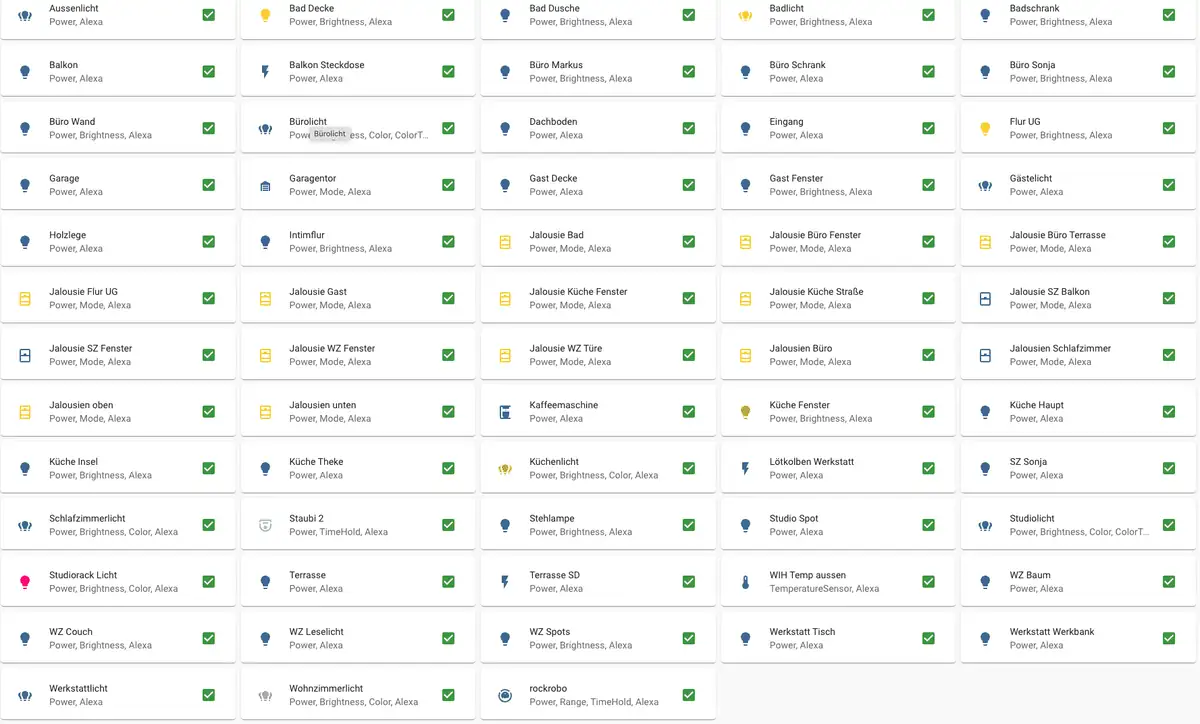 Zu den Lampen und Schaltern gehören auch “virtuelle” Geräte, z. B. von meiner LCN-Installation , Alexa, PCs, TV- und ESPHome-Geräten.