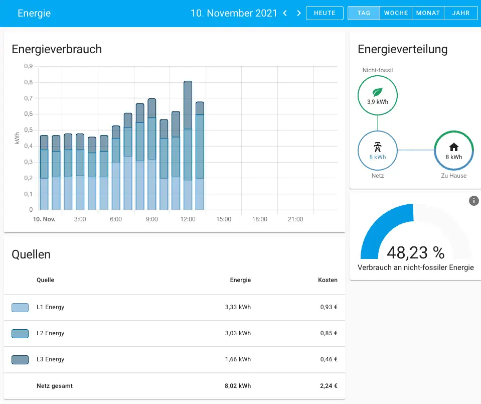 Der Stromverbrauch lässt sich in Home Assistant mittlerweile perfekt nachverfolgen - sowohl beim Netzbezug als auch bei der Einspeisung. Wer kein Smartmeter hat, das sich über eine Schnittstelle auslesen lässt, kann auf den günstigen Shelly 3EM zurückgreifen. Dessen Möglichkeiten habe ich hier beschrieben: Stromverbrauch mit dem Shelly 3EM und Home Assistant messen