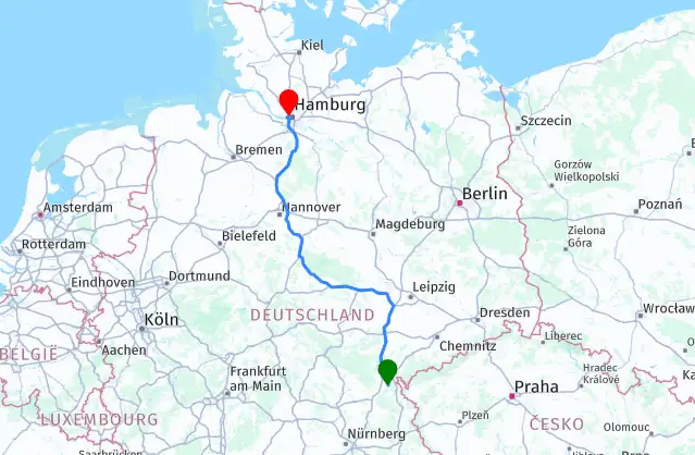 Man muss keine Angst haben, von A nach B zu kommen, auch wenn A Oberfranken bei -2 Grad und B Hamburg bei 5 Grad ist. 540 km insgesamt. 1 Ladestopp. Kosten der einfachen Strecke 22,50 €.