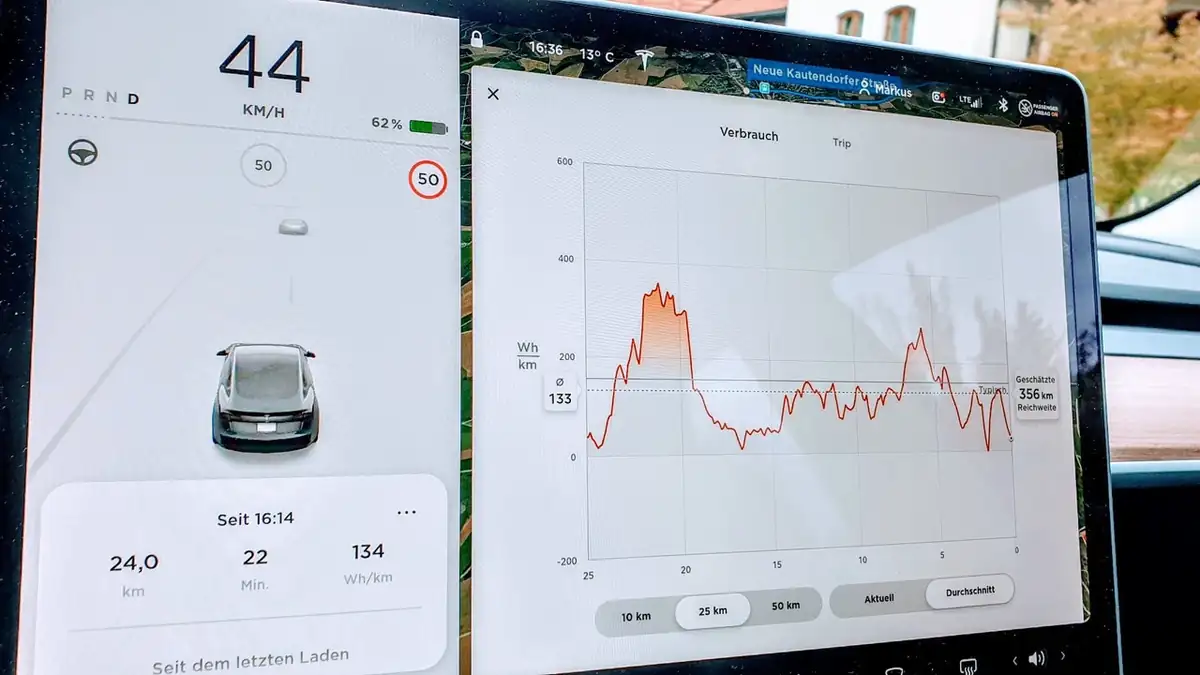 Mein Tesla verbraucht im Schnitt 17,8 kWh auf 100 km. Meine tägliche Strecke zur Arbeit und zurück ist auch mit 13 kWh möglich, sofern es über 10 Grad hat, windstill und trocken ist. Die 2000 km haben mich bisher 93 Euro gekostet.