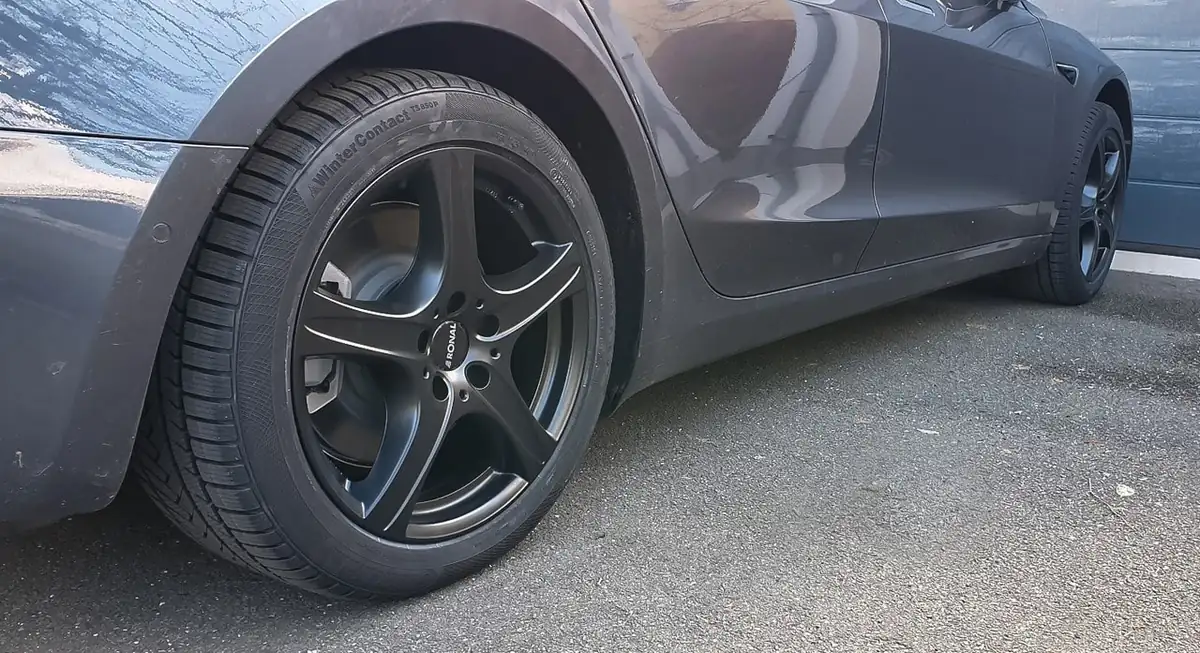 Als Winterräde für den Tesla habe ich Continental TS-850P 245/45R 18 96V auf mattschwarzen Ronal R55 Felgen. Komplett mit RDKS-/TMPS-Sensoren und Montage habe dafür knapp 1.500 Euro bezahlt. Ich bin nicht so der Freak, was Felgen und so Zeugs angeht. Man könnte sogar sagen, es ist mir ziemlich egal und ich würde hier nie unnötig Geld investieren. Trotzdem finde ich, dass die Ronal gut aussehen.