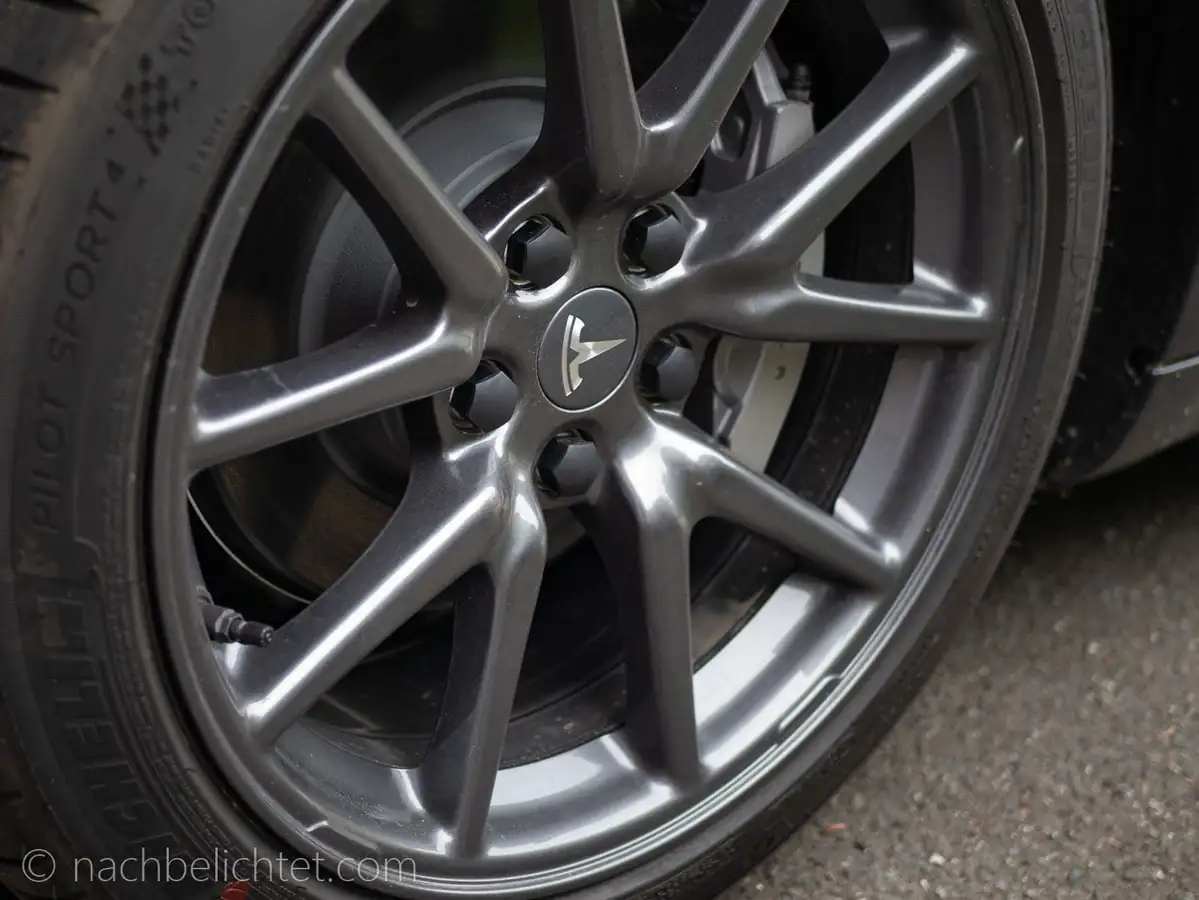 Mittlerweile sind wieder die Sommerräder montiert. Die Aero-Radkappen habe ich derzeit nicht drauf, denn die Tesla-Felgen sehen einfach zu gut aus, als dass man sie abdecken sollte. Da aber die blanken Radschrauben sichtbar sind und die Radnabe keine Abdeckung hat, habe ich mir die Original-Abdeckungen von Tesla gegönnt. Mit 50 Euro kein Schnäppchen, aber wohl deutlich besser verarbeitet, als die chinesischen Nachbauten, die man bei Amazon findet.