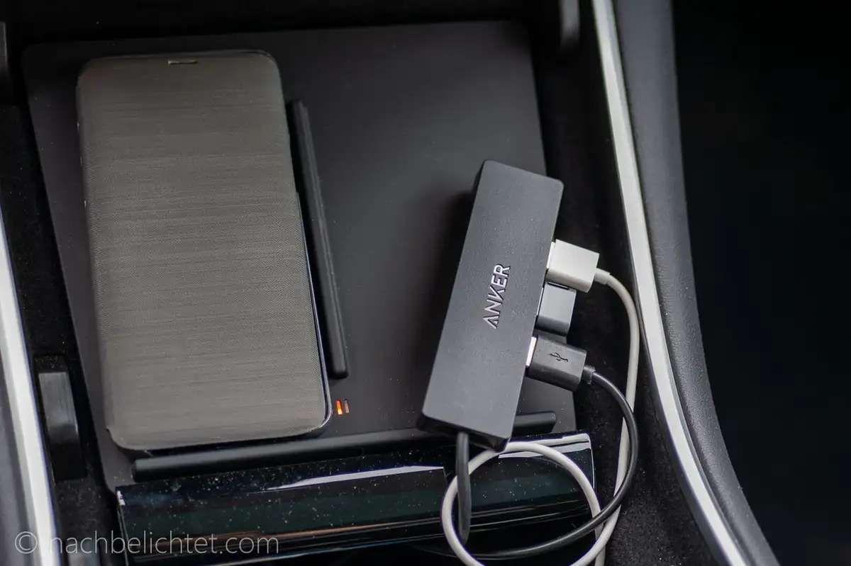 Induktives Laden, Hub und USB-Stick für Dashcam und Sentry-Mode#