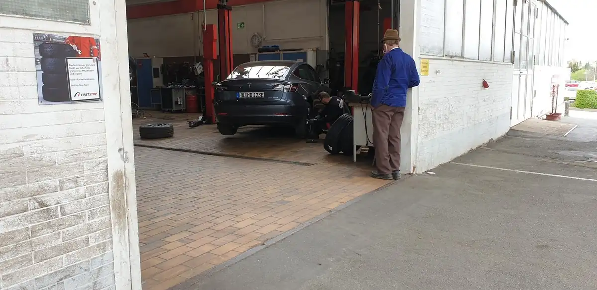 Ich habe trotzdem einige Reifenhändler in der Gegend abtelefoniert und festgestellt, dass keiner von denen Angst davor hat, Winterkompletträder für das Tesla Model 3 zu verkaufen und zu montieren. Den Zuschlag bekam bei mir First Stop in Hof . Das ist nur wenige Kilometer von mir entfernt und der Service dort war erstklassig! Die Jungs freuten sich über ein paar Tipps, wie man die Sicherheitsfunktionen abschalten kann, denn beim Anheben des Autos ging zunächst die Alarmanlage mit heftigem Getöse los.