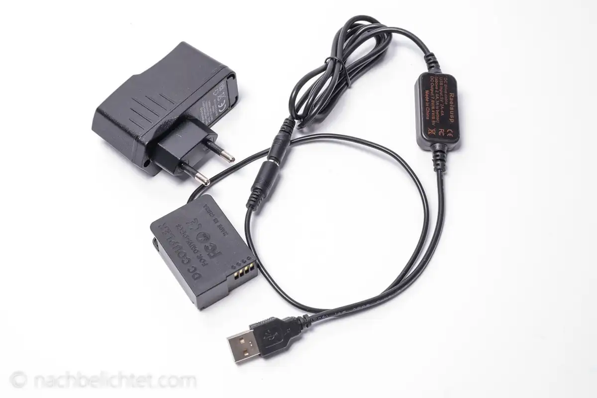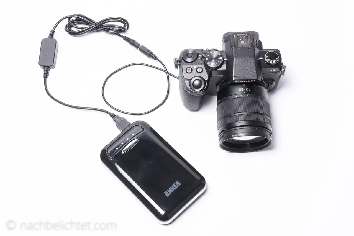 Diese Dummy-Batterien mit USB-Anschluss gibt es nicht nur für diverse Panasonic-Modelle, sondern auch für Kameras von Sony, Canon und kleinere Nikon-Modelle . Mit einer Powerbank hat man damit auch bei leeren Akkus noch eine Notlösung für unterwegs.