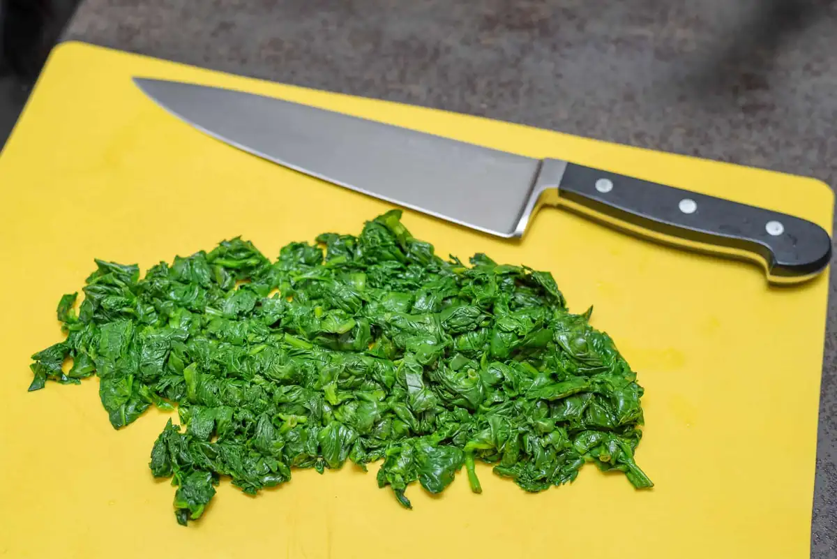 Danach das heiße Wasser ablassen und mit eiskaltem Wasser aus dem Hahn abspülen. Damit erhält er auch bei der späteren Verarbeitung seine appetitlich grüne Farbe. Ausdrücken und schneiden - oder was man sonst damit vorhat.
