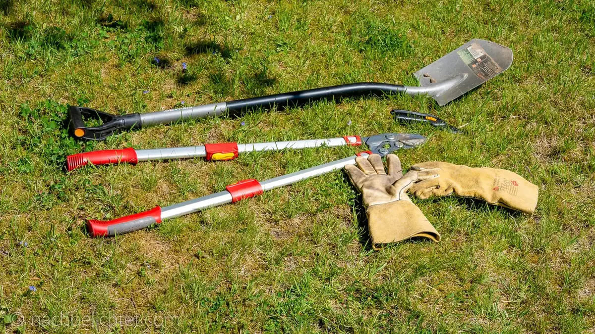 Hat man die Sträucher erst einmal durchgeschnitten, was mit einer langen Astschere am einfachsten und sichersten geht, hängen die Ranken meist noch in anderen Pflanzen. Anstatt nun spezielle Dornenschutzhandschuhe zu kaufen, die preislich meist über 25 Euro pro Paar liegen, habe ich auf eine Alternative aus meiner Werkstatt zurückgegriffen.