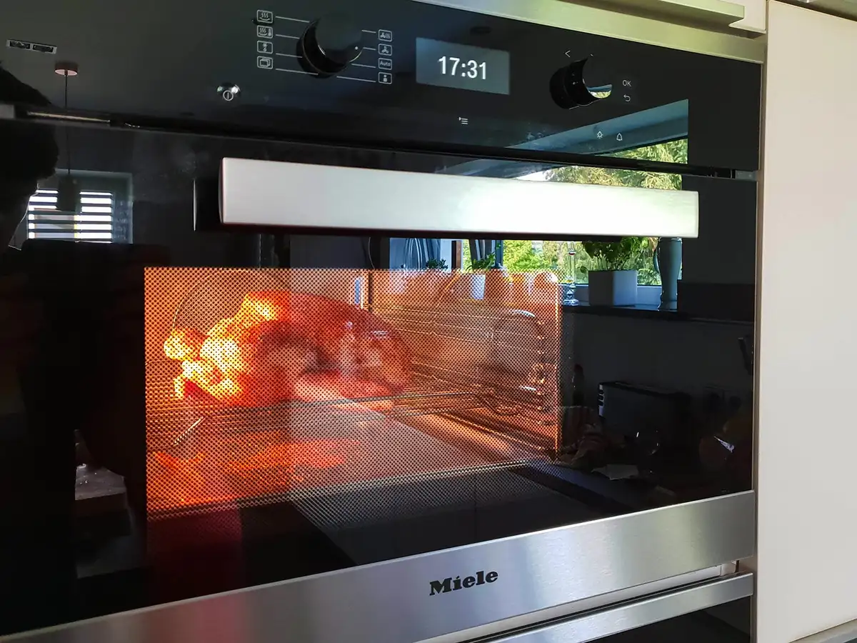 Apropos Backofen-Pommes. Für Fertiggerichte kann man sich das Vorheizen des Backofens sparen. Die Hersteller dieser Fertiggerichte empfehlen auf den Verpackungen das Vorheizen nur deshalb, weil man ab einer konstanten Temperatur ziemlich genau eine Garzeit angeben kann. Jeder Backofen benötigt unterschiedlich lange, um auf die eingestellte Temperatur zu kommen. Unser Miele z. B. nur 5 Minuten. Unser alter Backofen hingegen über 12 Minuten.