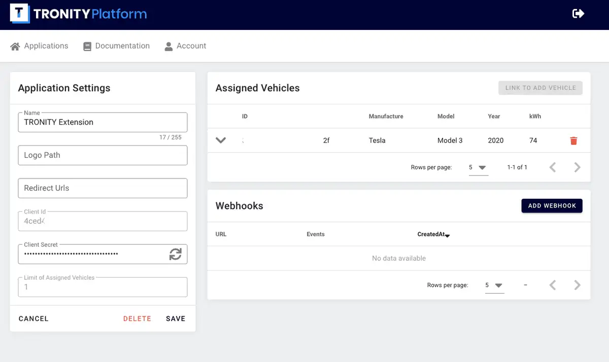 Um Tronity mit Home Assistant zu verbinden, benötigt man eine Client-ID, Client-Secret sowie Vehicle ID, die man unter https://app.tronity.tech/apps erstellen bzw. auslesen kann.