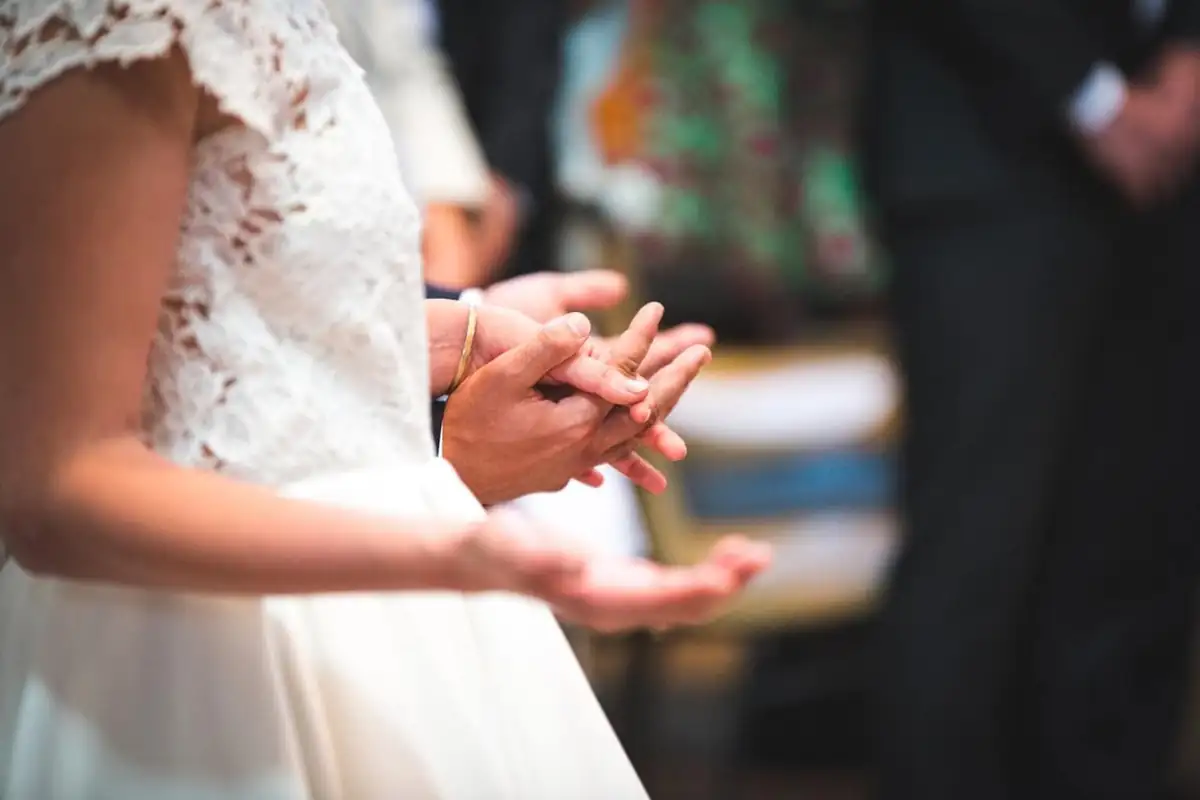 Auf dem Weg nach draußen möchte man den Kuss vor der Kirche romantisch und schön freigestellt und gleich darauf wird der Brautstrauß geworfen und man braucht wieder eine schnelle Verschlusszeit.