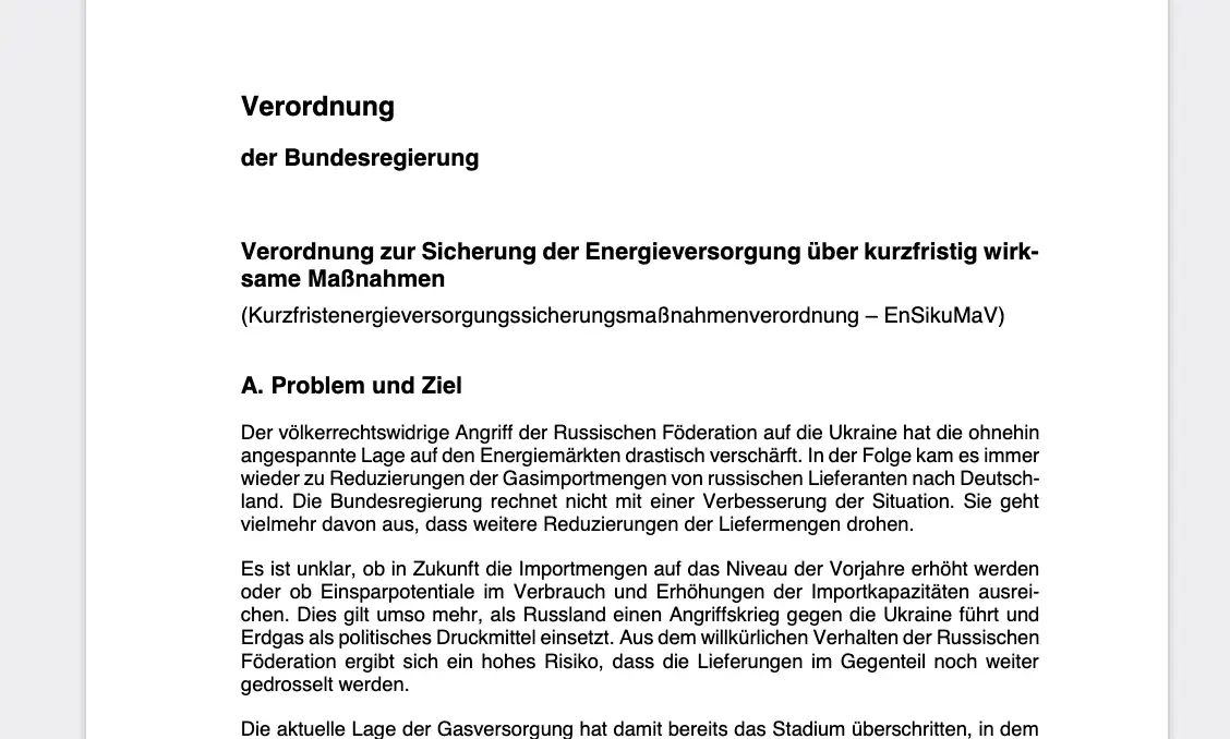 Offiziell heißt das bürokratische Monstrum: Mittelfristenergieversorgungssicherungsmaßnahmenverordnung – kein Witz! Ein paar Bindestriche würden es zumindest lesbar machen. Durch dieses Wort erkennt man aber auch gleich, wessen Geistes Kind, das ist.