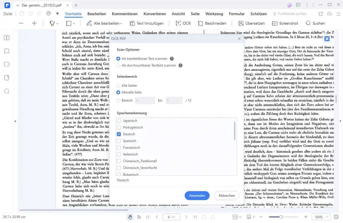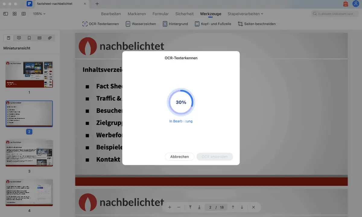 Eine sehr gefragte Funktion, ist die Umwandlung von PDF-Dokumenten in bearbeitbare Office-Dokumente wie Word, Excel oder Powerpoint-Dateien. Dabei werden Formatierungen und Schriftarten erhalten. Noch interessanter ist die eingebaute OCR-Funktion. Damit können sogar gescannte Dokumente, Text in Bildern und sogar Handschrift in durchsuchbaren und bearbeitbaren Text umgewandelt werden - und das in 20 Sprachen. Für