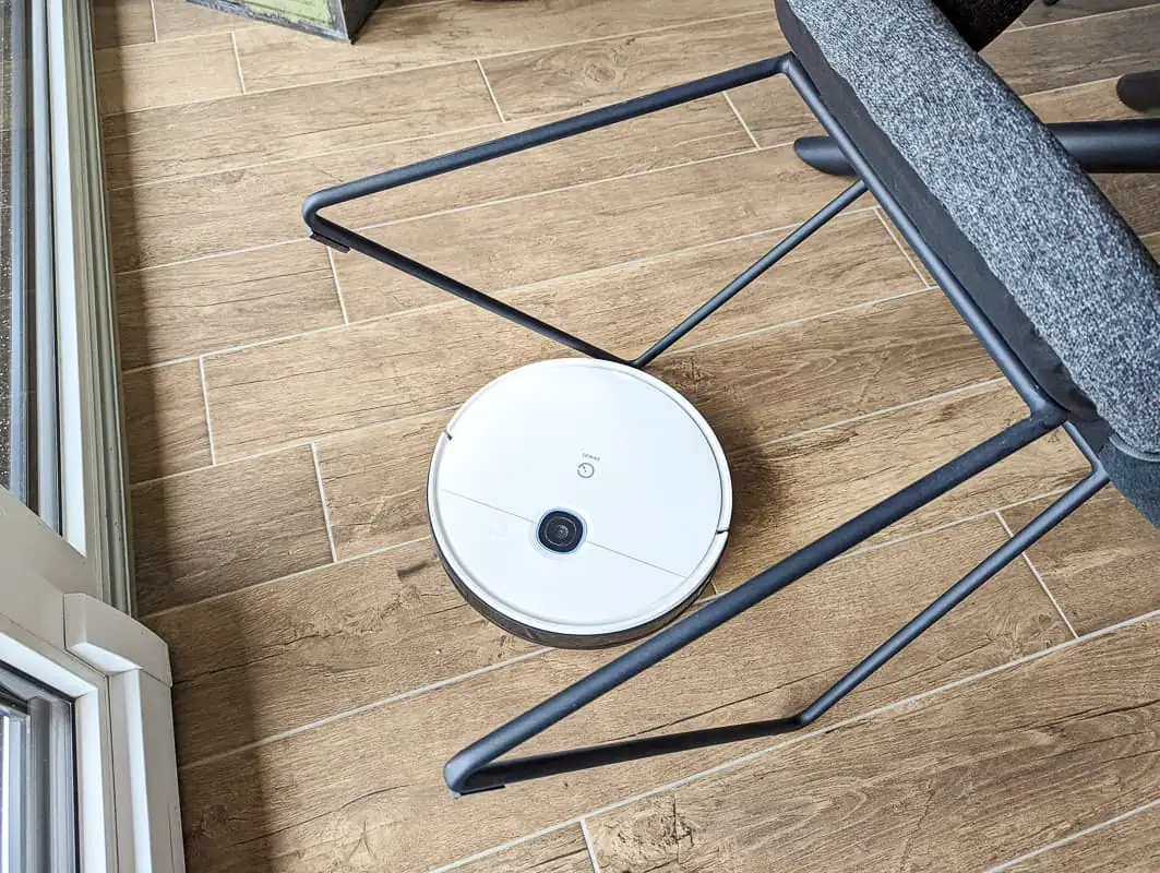Manchmal nimmt sich der Yeedi auch eine kleine Denkpause, um dann fortzufahren. Trotzdem funktioniert die Navigation mit der Kamera erstaunlich gut, und im Vergleich zum betagten Vorwerk VR200 mit Laser-Navigation geht der Yeedi sehr strukturiert und präzise ans Werk und ist dabei auch noch deutlich schneller fertig. Flache Hindernisse, wie etwa die Beine unserer Esstisch-Stühle, versucht auch der Yeedi zu überfahren. Da machte bislang keiner unserer Saugroboter eine Ausnahme, weshalb wir die Stühle dann immer etwas ankippen.