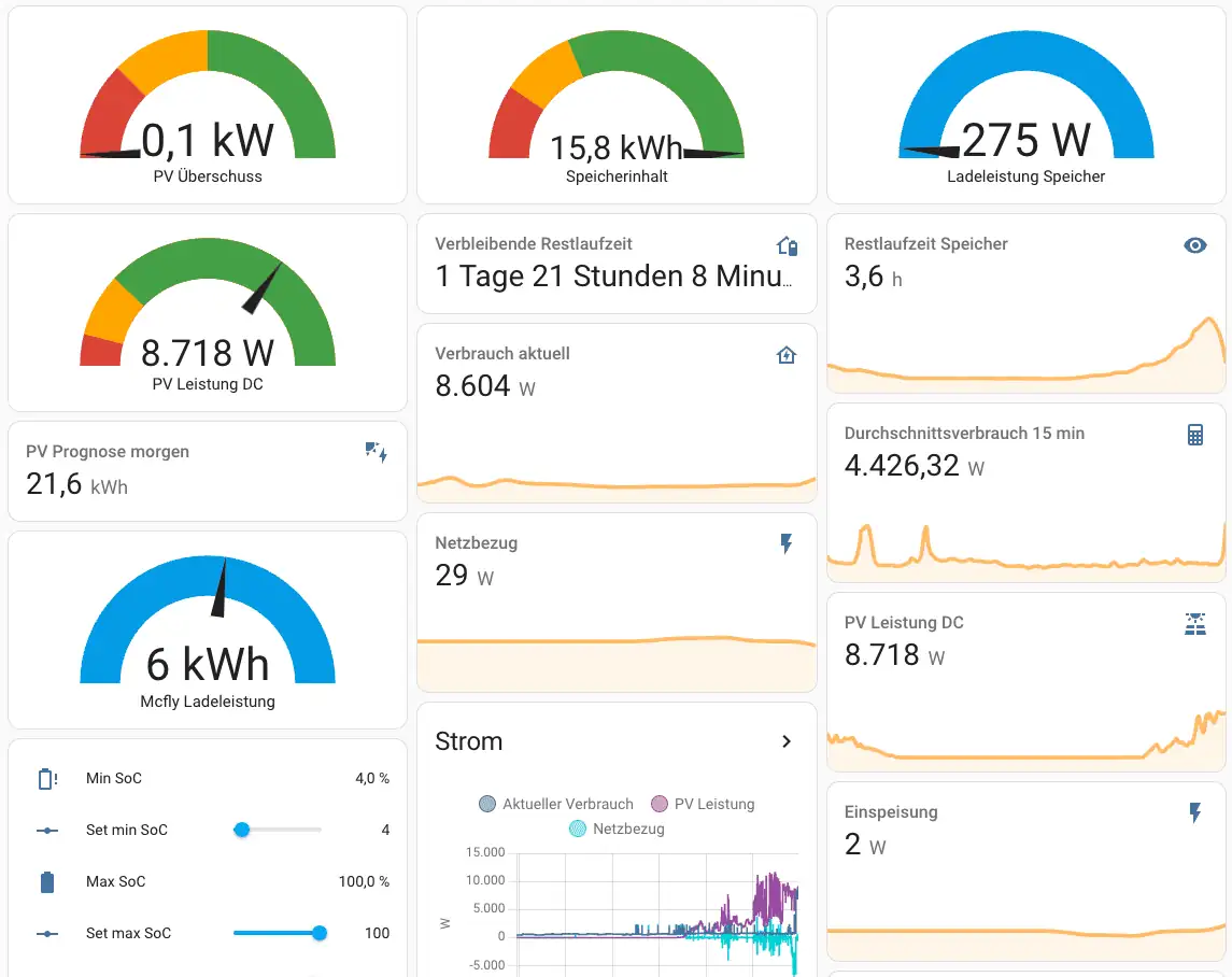 My Home Assistant installation reminds me that there is an abundance of electricity and that the car could be charged, and when I enter the geofence area of the garage with the Tesla, Home Assistant automatically opens the garage door. Gimmicks that are easy to do with the Tesla’s functions.