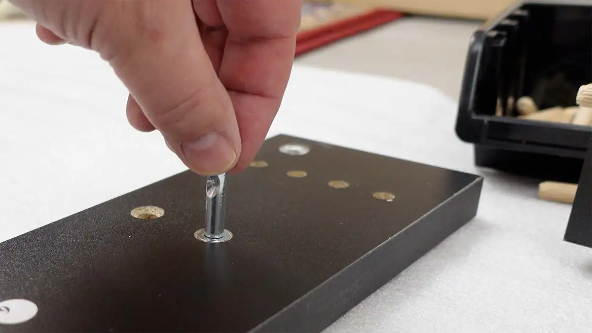 The parts are connected with wooden dowels and special quick-release metal fasteners. Nothing needs to be glued or drilled. Plastic threaded bushes are also available for the perforated rack rails. If you can assemble IKEA furniture, you can assemble Zaor Miza!