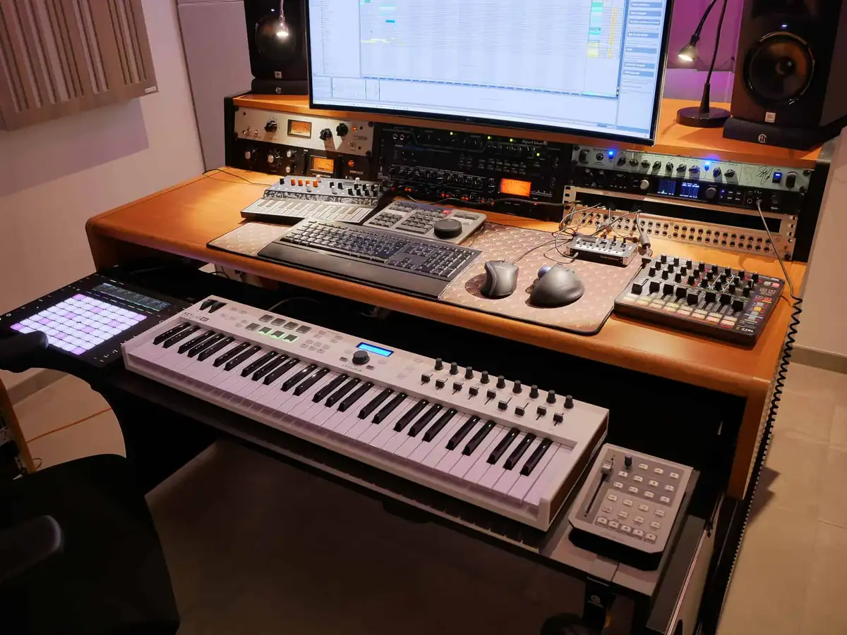 - 100 euros for this model is no mean feat and for many people a new synthesiser or preamp is more interesting than a studio table like this. But once you have worked with it, you realise how much it supports you in your creative work because everything has its place. The monitor speakers are at the right height, the cables are hidden away and keyboards and computer keyboards no longer get in each other’s way.